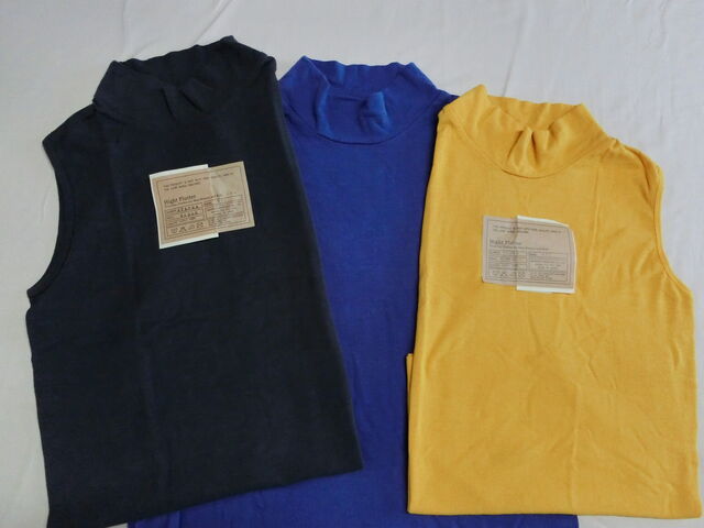 今日の私はki na koの綿麻天竺のノースリーブを着ています。半袖でもいいのですが、猛暑になると腕は出してしまった方がだいぶ涼しく感じます。(写真はハイフラッターのRTLシリーズのハイネックノースリーブ)